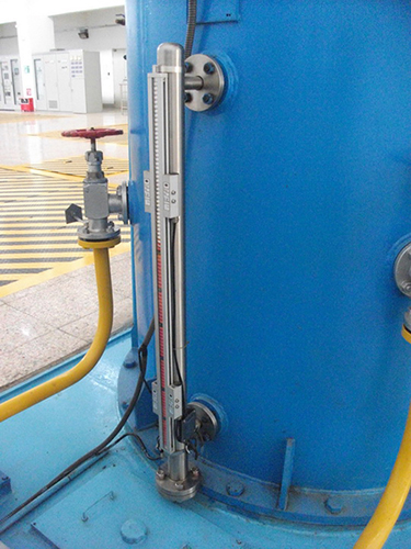 液位計根據浮力原理,浮子在測量管內隨液位的升降而上下移動,浮子內的永久磁鋼通過磁耦合作用,驅動紅、白色翻柱翻轉180’液位上升時,翻柱由白色轉為紅色,下降時,翻柱由紅色轉為白色,從而實現液位的指示。