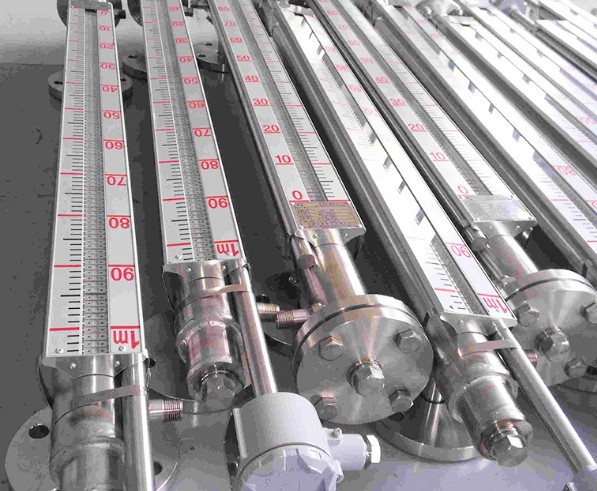 磁翻板液位計,是本公司引進、吸收國內外同類產品,并加以消化、吸收、提高,按原化學工業部頒布的磁性液位計生產的產品??捎糜诟鞣N塔、罐、槽、球形容器和鍋爐等設備的介質液位測量。該磁翻板液位計系列可以做到高密封、防泄漏和適應高壓、高溫、腐蝕性條件下的液位測量。全過程測量無盲區,顯示醒目,讀數直觀。特別是現場指示部分,由于不與液體介質直接接觸,所以對高溫、高壓、高粘度、有毒、有害、強腐蝕性介質,更能顯示其優越性。因此,它比傳統的玻璃管式、板式液位計具有更高的可靠性、安全性、先進性、實用性。