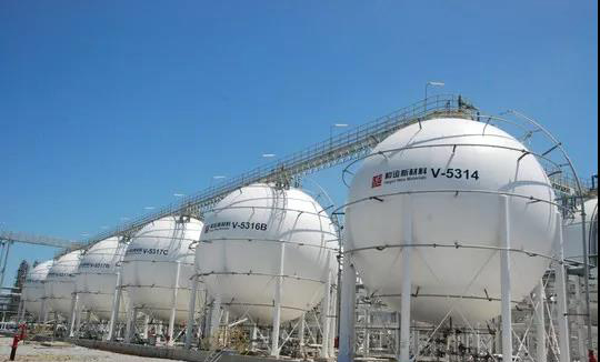 球罐,抗壓性好,與圓筒容器(即一般立式貯罐)相比,在直徑和壓力相同的情況下,罐壁厚度僅為圓筒容器的一半,鋼材用量省;量程大,且占地較小,基礎(chǔ)工程簡單,性價比高,為*常用儲罐之一。