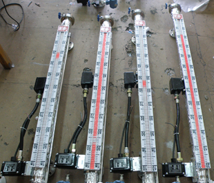 在液位計立管上由用戶設定上、下限位置安裝控制器,控制器內(nèi)帶有自保持作用的舌黃開關,利用磁性浮子隨液位移動使黃片開關動作時,實現(xiàn)報警或限位控制。